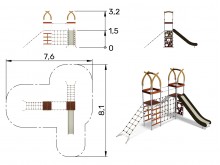 Věžičková sestava ve stylu džungle je složena ze dvou věžiček s výškou podlahy 150 cm propojené svislými lanovými sítěmi s lanem na přichycení. Věžičky jsou vybaveny jednoduchou stříškou a různými typy výlezu - lanové sítě šikmé, stěna s kruhovými výřezy a žebříky. Z jedné věžičky vede skluzavka.