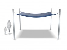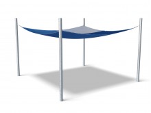 Prodyšná odolná krycí plachta o rozměru 4x4 m je vyrobena ze speciální prodyšné pogumované textilie a uchycena na sloupy ze žárově zinkované oceli.