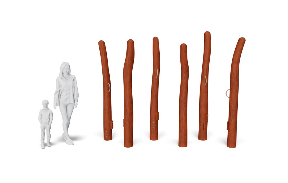 Prolézací kmeny jsou sestaveny z přírodně rostlých kmenů stromů zbavených kůry. Ve spodní části každého kmene jsou přidělány špalíky na chodidla a v horní části jsou umístěné lanové chyty. Na povrchovou úpravu jsou použity speciální ekologické čistě přírodní oleje a lazury. Je použit zinkovaný spojovací materiál. Lanové chyty jsou tvořeny lany Ø 16 mm s nerozebíratelným spojením dle ČSN-EN 1176.