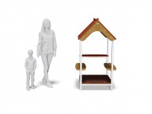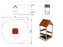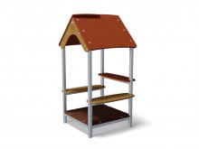Věžičková sestava ve stylu zámku s jednou věžičkou - domečkem. Věžička je vybavena stříškou, lavičkami a stolečkem.