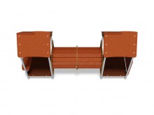 Konstrukce ze žárově zinkované oceli. Sestava je vyrobena z vodovzdorné překližkové desky z finské břízy s bezpečným zaoblením o poloměru 9 mm, na povrchovou úpravu jsou použity speciální ekologické čistě přírodní oleje a lazury; podlaha ve výšce 10 cm.
