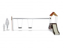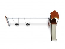 Věžičková sestava s houpačkami ve stylu zámku je složena z věžičky s výškou podlahy 90 cm. Možnosti nástupu na věžičku jsou pomocí lezecké stěny s kruhovými výřezy, žebříku a rampy. Z věžičky vede skluzavka. Na věžičku je napojena konzola se dvěma klasickými houpačkovými sedátky.