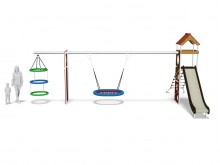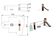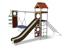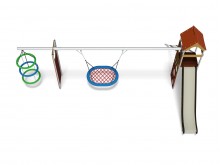 - 1x věž, 1x lanová síť šikmá, 1x lanová síť svislá, 2x lezecká stěna s kruhovými výřezy, 1x skluzavka, 1x houpačkové hnízdo, 1x lanové kruhy